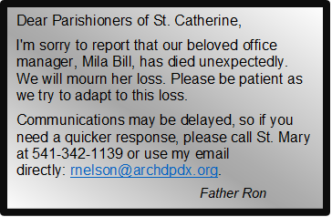 Please Note: Click on CALENDAR above for any changes to the Mass schedule